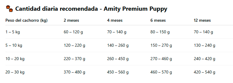 Ajusta la dosis según el nivel de actividad y estado corporal del cachorro.